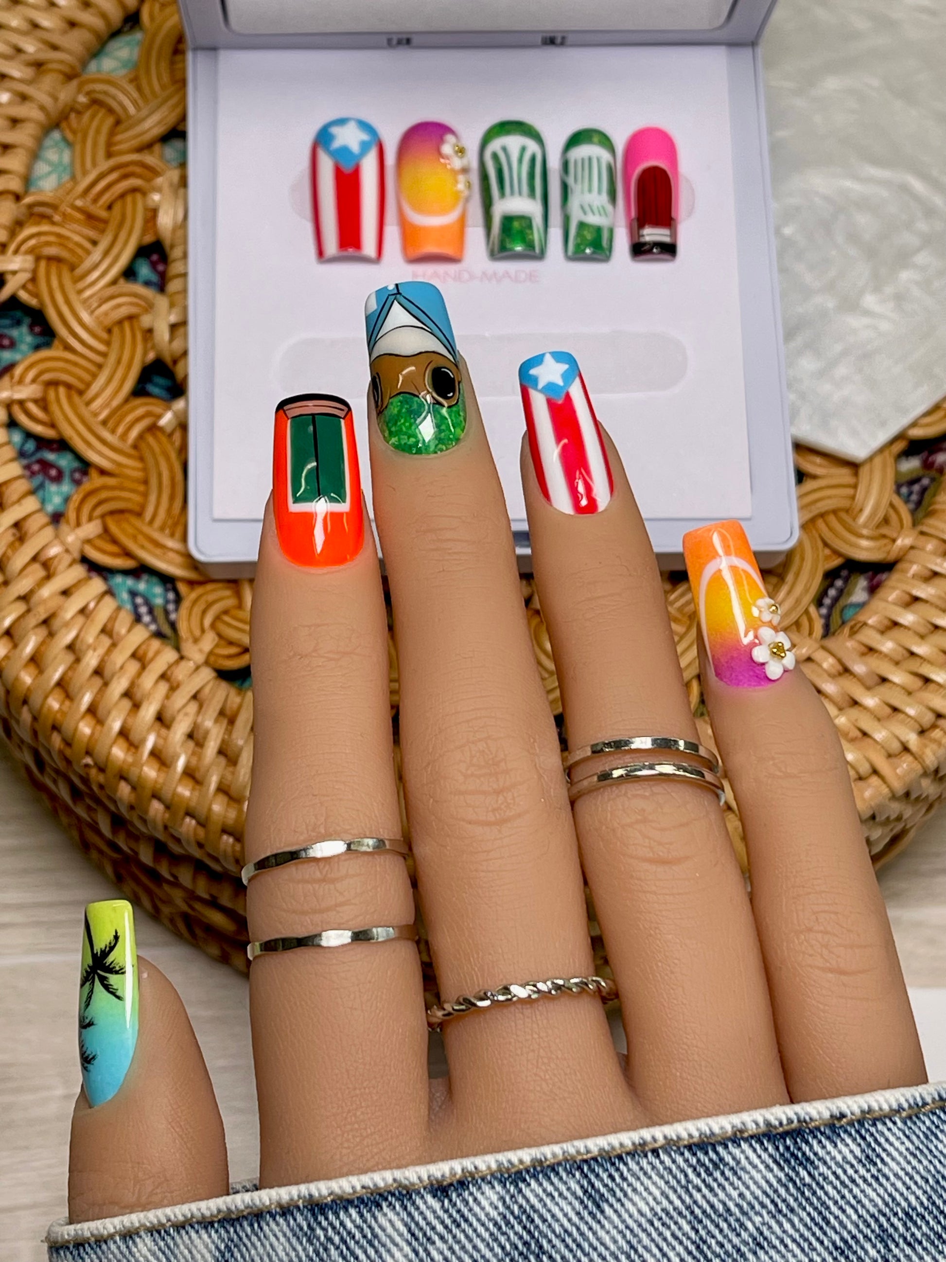 Every nail design and character are hand painted, the size of the characters and designs may vary.